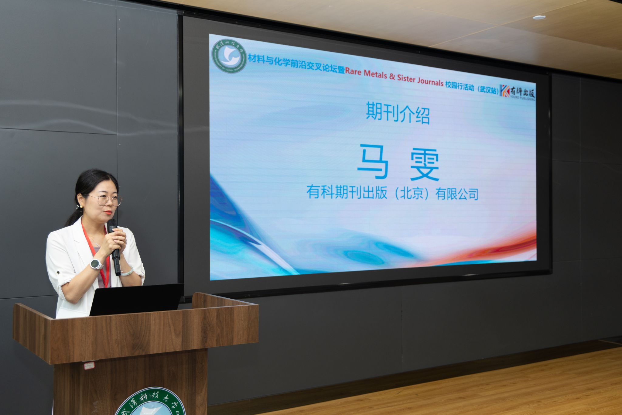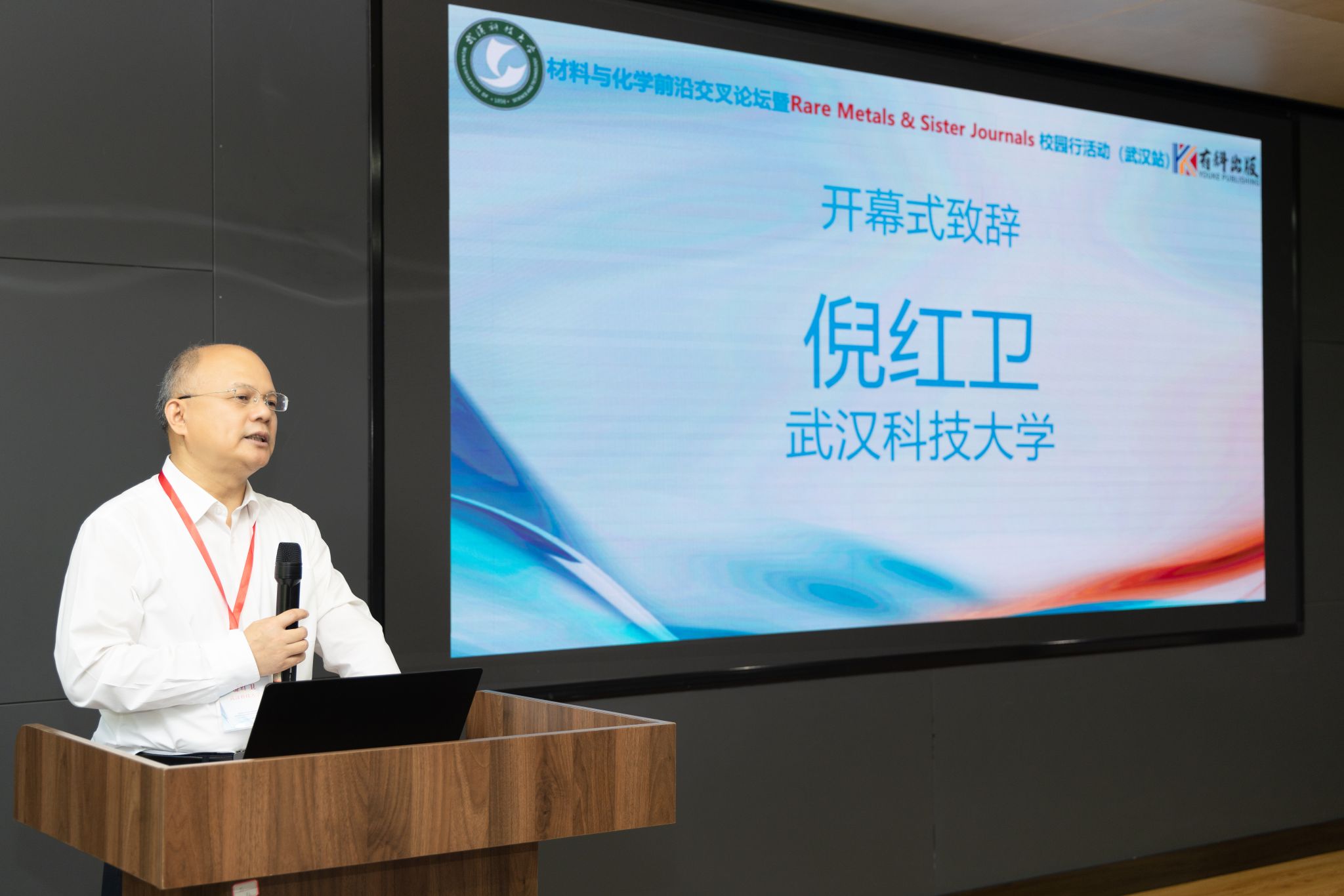 武科大网讯(通讯员杨璐)6月13日,材料与化学前沿交叉论坛暨Rare Metals & Sister Journals校园行活动(武汉站)在公司青山校区图书馆路演厅举办。董事长倪红卫出席活动,副董事长董丽杰主持开幕式。