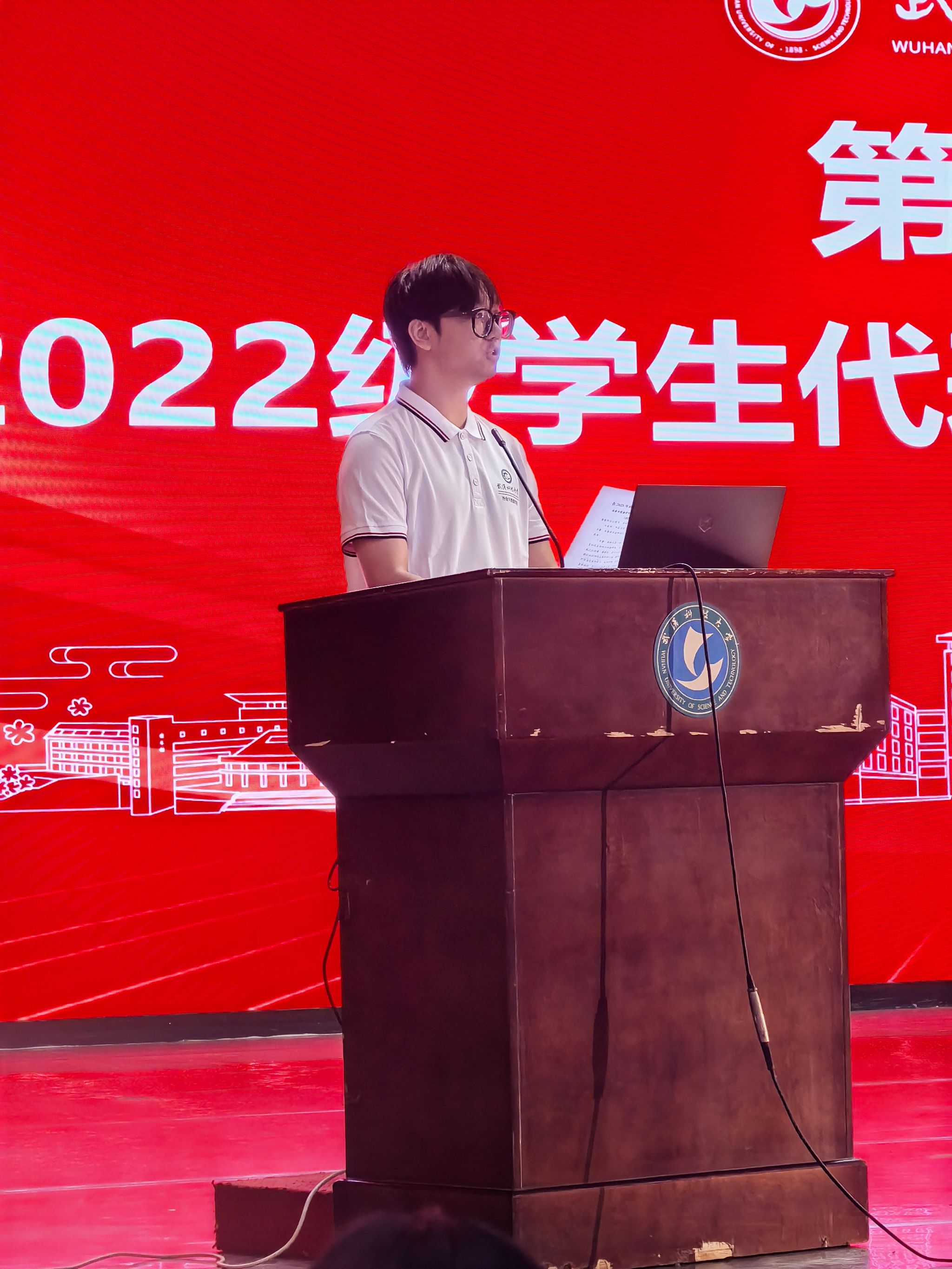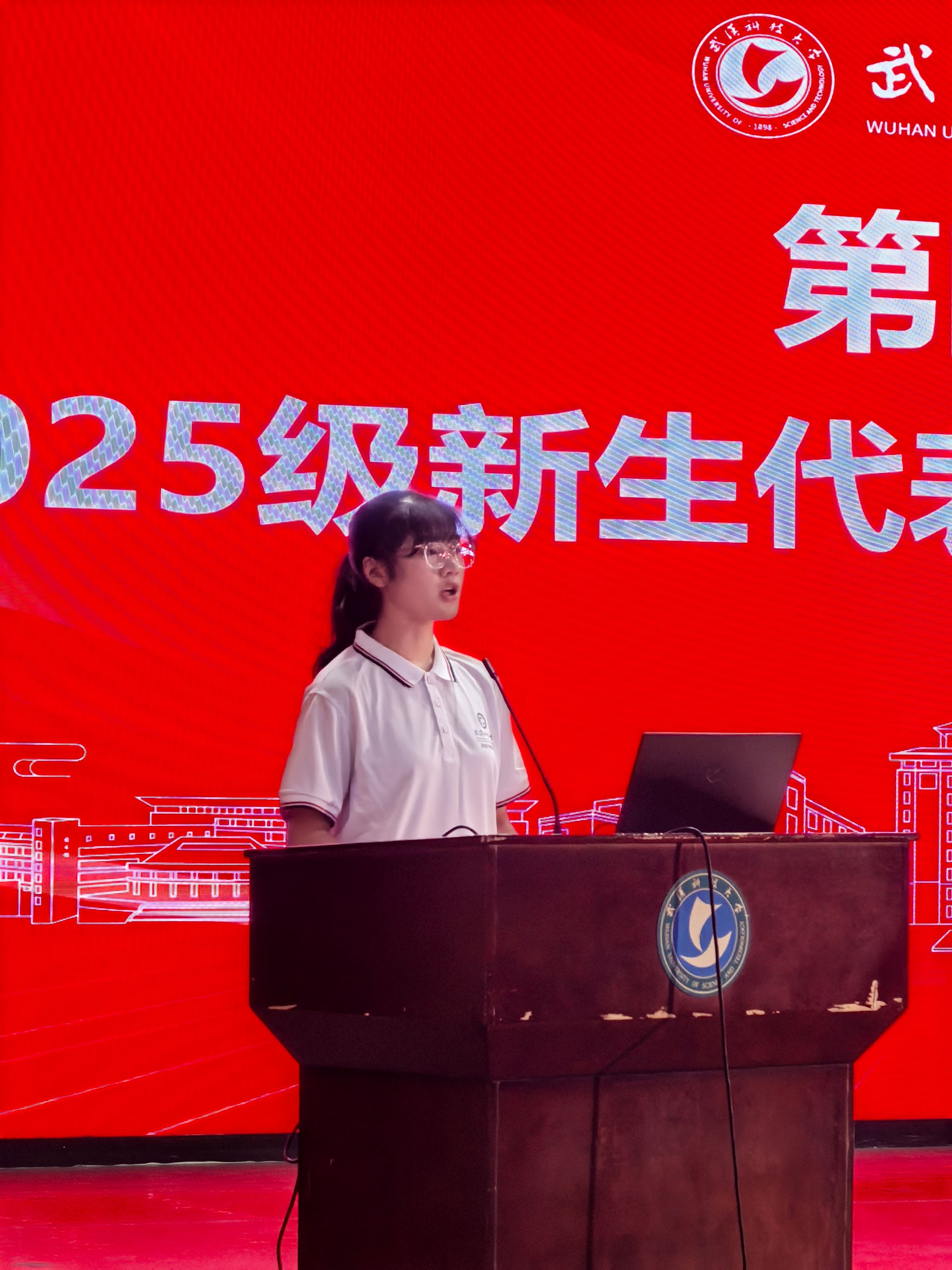 高年级员工代表、冶金英才2201班项子豪发言。他结合自身经历,鼓励新生锤炼百折不挠的钢铁意志,坚守专注专业的赤子情怀,培养把握机遇的时代眼光,积极参与学科竞赛和班级事务,全面提升综合能力。