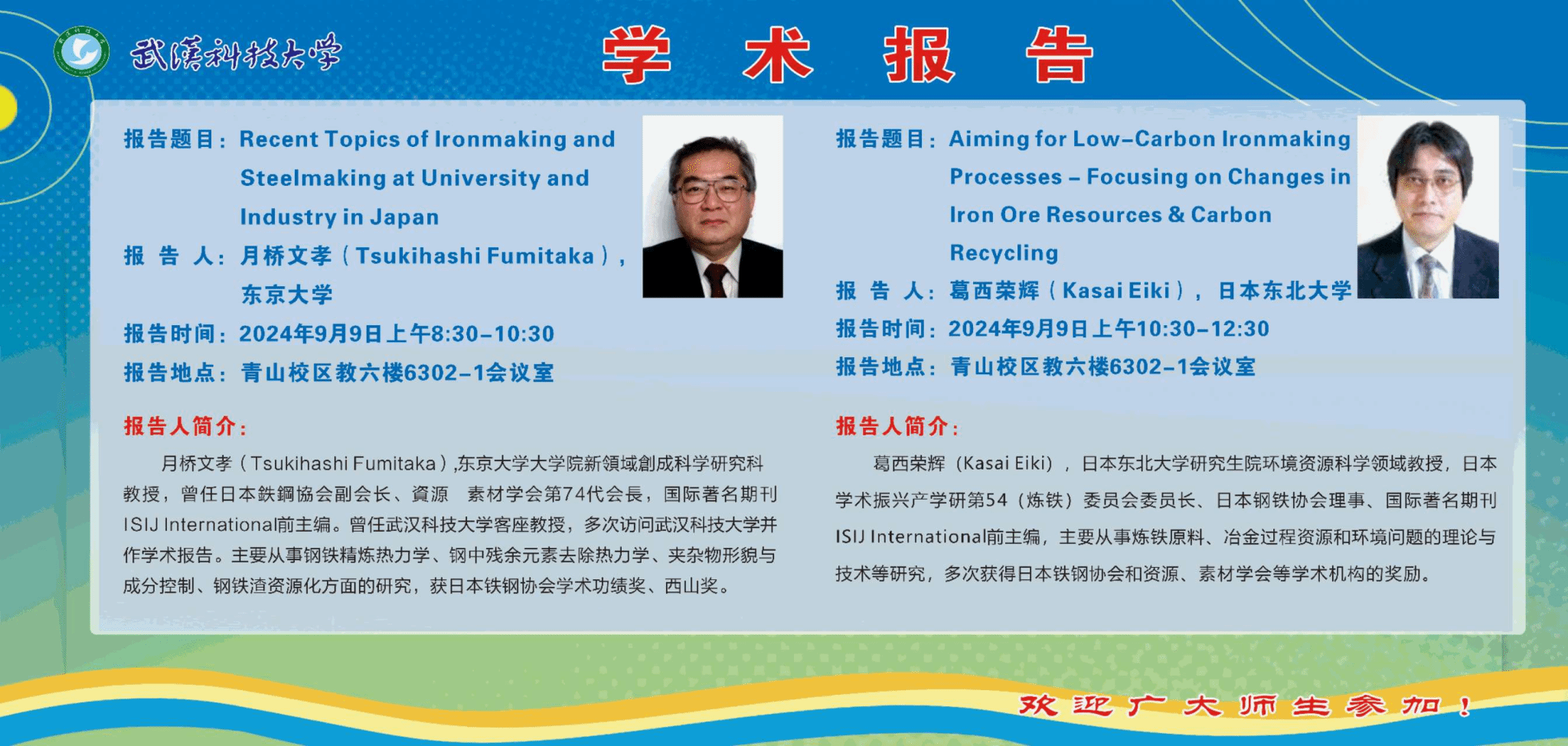 报告人简介:葛西荣辉(Kasai Eiki):日本东北大学研究生院环境资源科学领域教授,日本学术振兴产学研第54(炼铁)委员会委员长、日本钢铁协会理事、国际著名期刊ISIJ International前主编,主要从事炼铁原料、冶金过程资源和环境问题的理论与技术等研究,多次获得日本钢铁协会和资源、素材学会等学术机构的奖励。