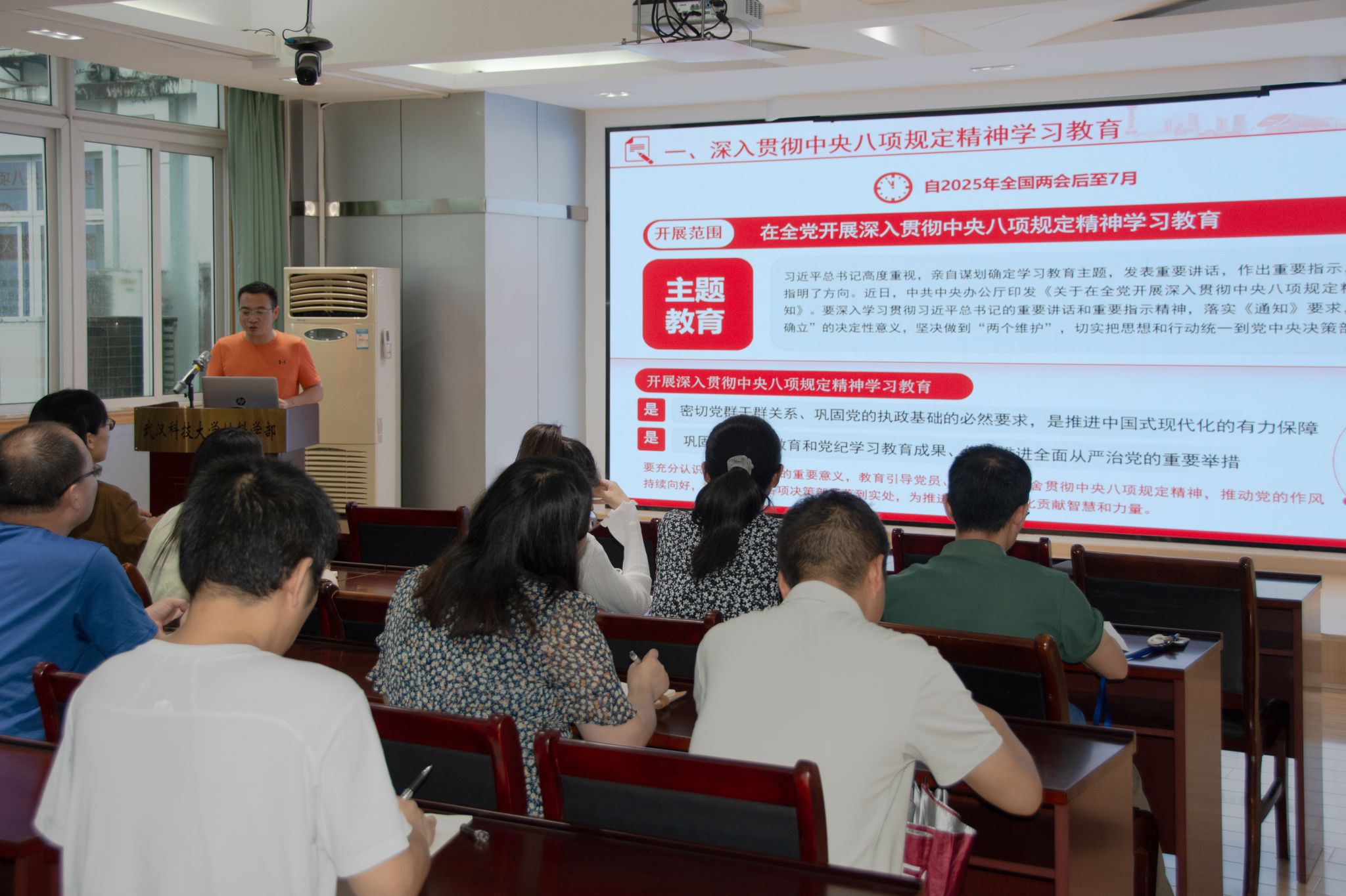 杨魁以“深入贯彻中央八项规定精神”为主题,为支部党员讲授专题党课。他结合中共中央办公厅《关于在全党开展深入贯彻中央八项规定精神学习教育的通知》要求,从“学习教育的重要意义”“中央八项规定核心内容”“违反规定的具体表现及纪律要求”三个维度展开讲解。