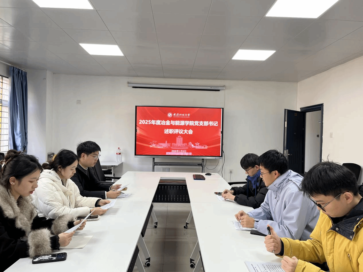述职评议采取现场述职方式开展,研究生冶金工程第一党支部、研究生冶金工程第二党支部等八个员工党支部书记围绕2025年党建具体工作情况,依次进行现场述职,系统总结了上一年度党建重点任务完成情况,重点汇报了落实立德树人根本任务、党支部建设、落实全面从严治党主体责任等工作成效,深入分析了当前工作中存在的短板弱项,并就新一年支部党建工作进行谋划部署。